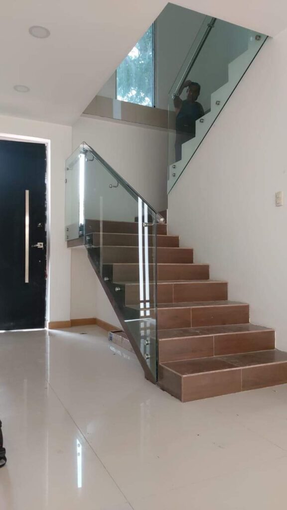 Instalamos barandas interiores con vidrio templado y pasamanos en acero inoxidable, ideales para escaleras modernas en hogares, oficinas o locales comerciales. Seguridad, estética y durabilidad en un solo diseño.